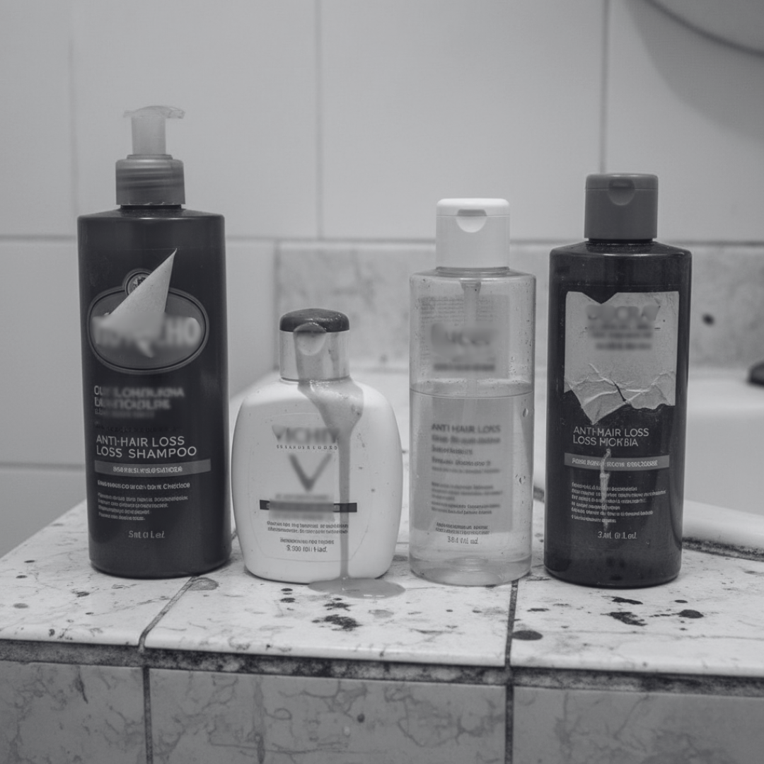 Los efectos secundarios van desde irritación hasta disfunción sexual. Y cuando los dejas, la caída vuelve peor porque nunca eliminaste la acumulación de DHT.