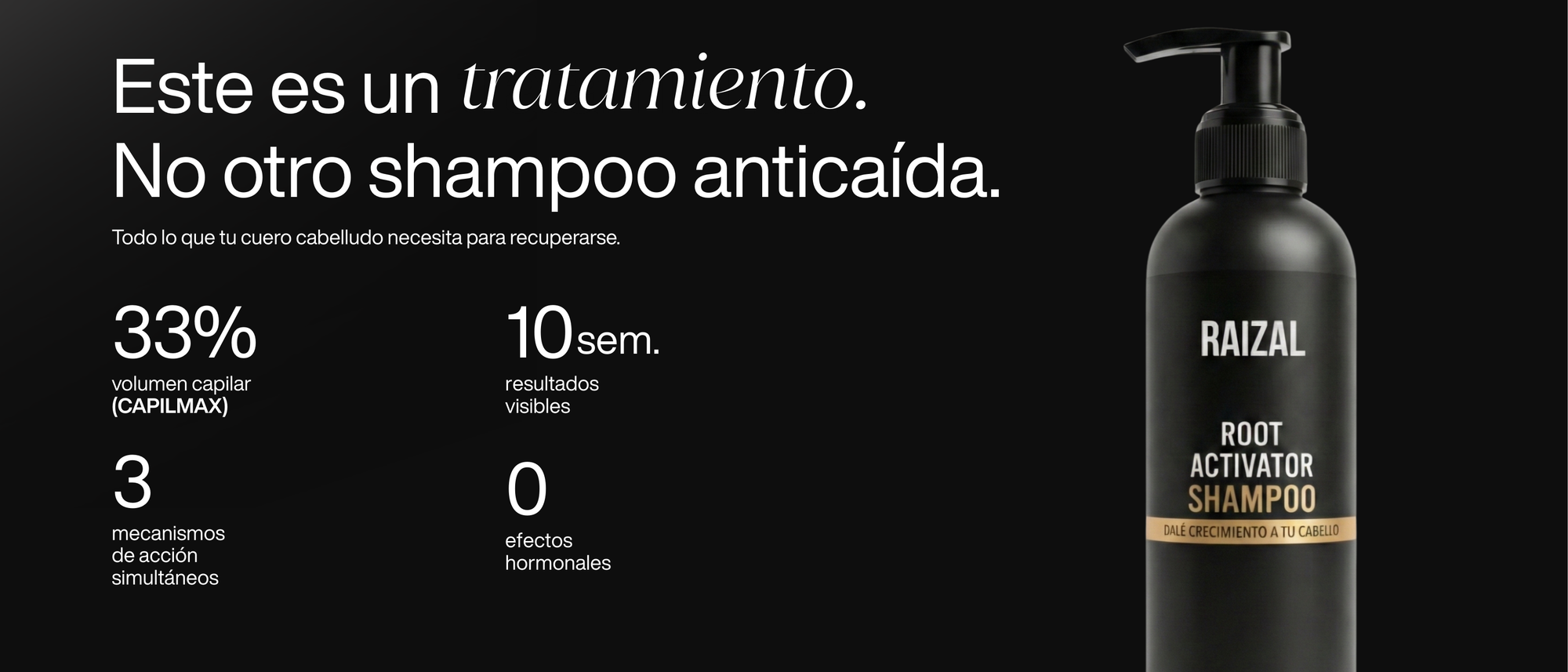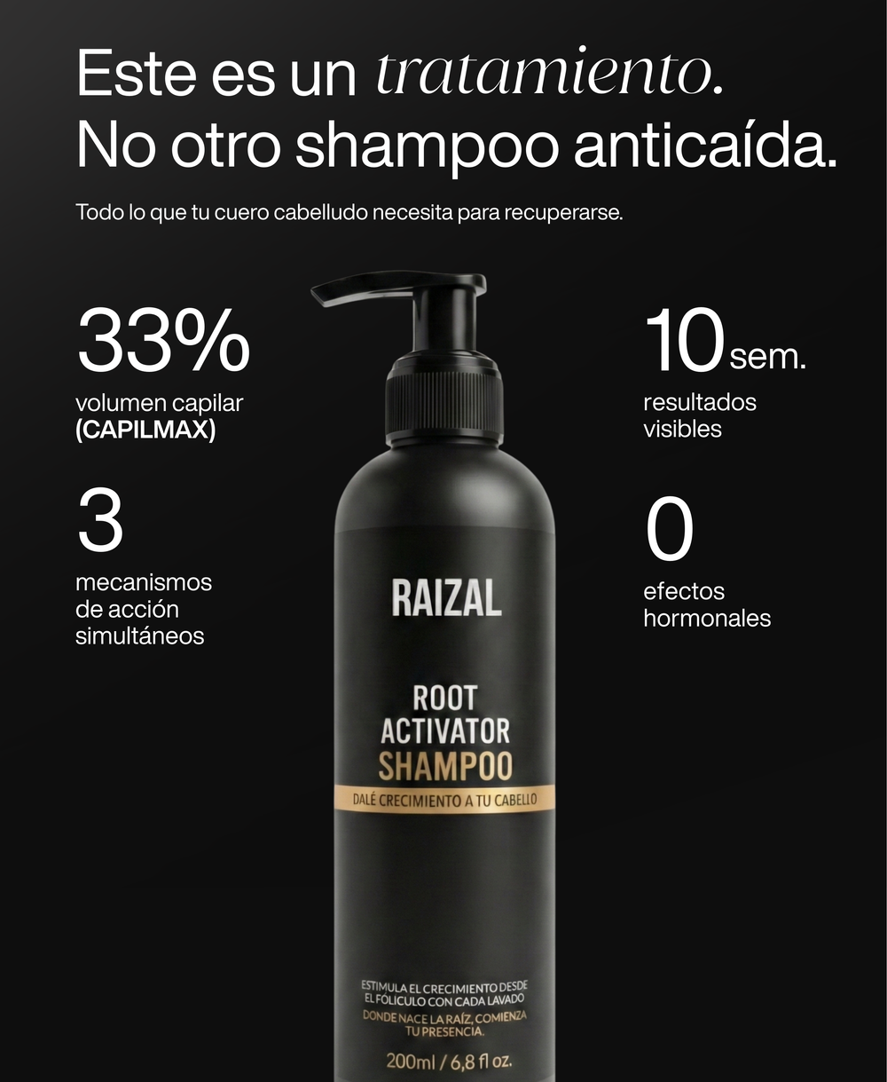 A diferencia de muchos productos que solo limpian el cabello o prometen resultados sin base real, RAIZAL™ trabaja desde la raíz con una fórmula respaldada por ciencia y pensada para hombres que buscan resultados concretos.